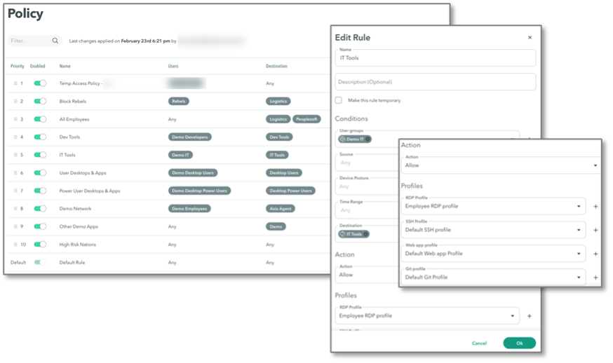 无论员工在哪,Axis Application Access Cloud都能向其提供企业应用和资源的访问服务。员工只需几分钟即可完成配置,不需要修改终端侧的网络或安装客户端软件。企业可以通过中心化的云控制台管理所有的用户、应用和策略。与网络层的解决方案不同,Axis提供完全的可观察能力和应用层级别的细粒度用户活动控制。Axis通过将应用与用户、终端和互联网隔离,避免应用遭受攻击。