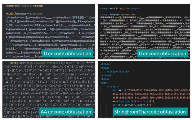 登陆页面中的反分析技巧在整个 2020 年和 2021 年期间,Roaming Mantis 背后的犯罪集团在登录页面脚本中使用了各种混淆技术,以逃避检测。
