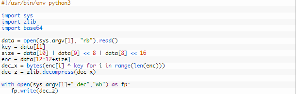 首先,加载器函数从嵌入的数据中取出除垃圾数据之外的每一部分数据。然后,使用嵌入的XOR密钥对加密的载荷进行XOR。在XOR操作之后,与前面的示例一样,使用zlib解压数据以提取有效载荷Dalvik可执行文件(DEX)。