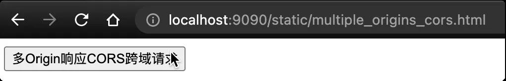 复制/** * 多Origin响应 * * @author YourBatman. <a href=mailto:yourbatman@aliyun.com>Send email to me</a> * @site https://yourbatman.cn * @date 2021/6/9 10:36 * @since 0.0.1 */ @Slf4j @WebServlet(urlPatterns = "/multiple_origins_cors") public class MultipleOriginsCorsServlet extends HttpServlet { @Override protected void doGet(HttpServletRequest req, HttpServletResponse resp) throws ServletException, IOException { String requestURI = req.getRequestURI(); String method = req.getMethod(); String originHeader = req.getHeader("Origin"); log.info("收到请求:{},方法:{}, Origin头:{}", requestURI, method, originHeader); resp.getWriter().write("hello multiple origins cors..."); setCrosHeader(resp); } /** * 写跨域响应头 */ private void setCrosHeader(HttpServletResponse resp) { resp.setHeader("Access-Control-Allow-Origin", "http://localhost:9090"); } } 1.2.3.4.5.6.7.8.9.10.11.12.13.14.15.16.17.18.19.20.21.22.23.24.25.26.27.28.29.30.至此,环境已经准备好。此页面有三个地址/域名可以访问到(不包括localhost),也就是Origin可能有这三种情况: