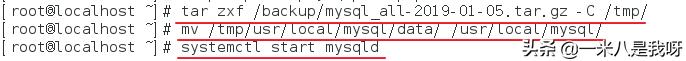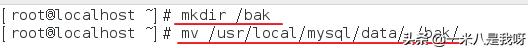 模拟故障,将/usr/local/mysql/data移动到/bak目录下。如下图: