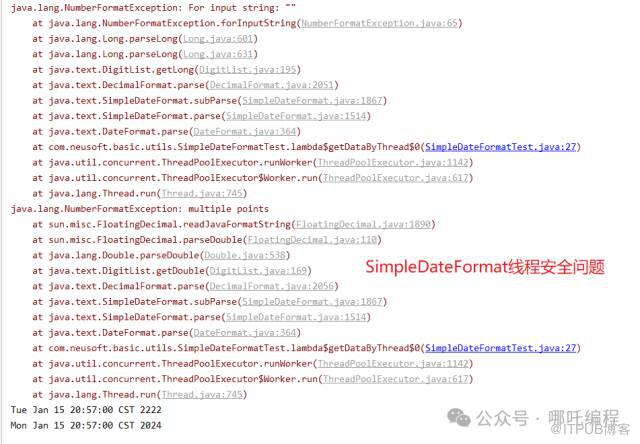 百度一下,才知道是高并发情况下SimpleDateFormat有线程安全的问题。