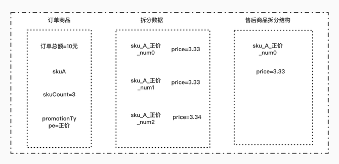 A+B捆绑销售,A金额3元。A+C捆绑销售,此时A金额2元。这时拆分的数据结构为:sku_A_捆绑_num0价格3元,sku_A_捆绑_num0价格2元。此时如果两个A都申请了售后,我们再按照sku_promotionType去获取拆分那么永远获取的都是第 一个的金额。因此针对这种特殊的促销场景,我们在原有获取拆分维度基础上又增加了一个价格。