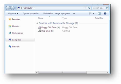 受感染计算机的源码下载屏幕截图,显示除了可移动驱动器外,无法通过explorer.exe访问其他任何驱动器