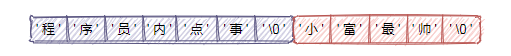 上边提到C字符串是不记录自身长度的,相邻的两个字符串存储的方式可能如下图,为字符串分配了合适的内存空间。