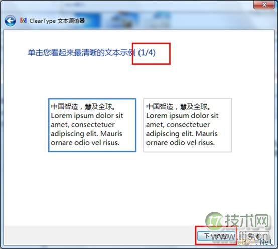 5.接下来会出现4种文本示例,文教用户可以根据个人感觉的统屏体模清晰程度来选择,然后点击“下一步”