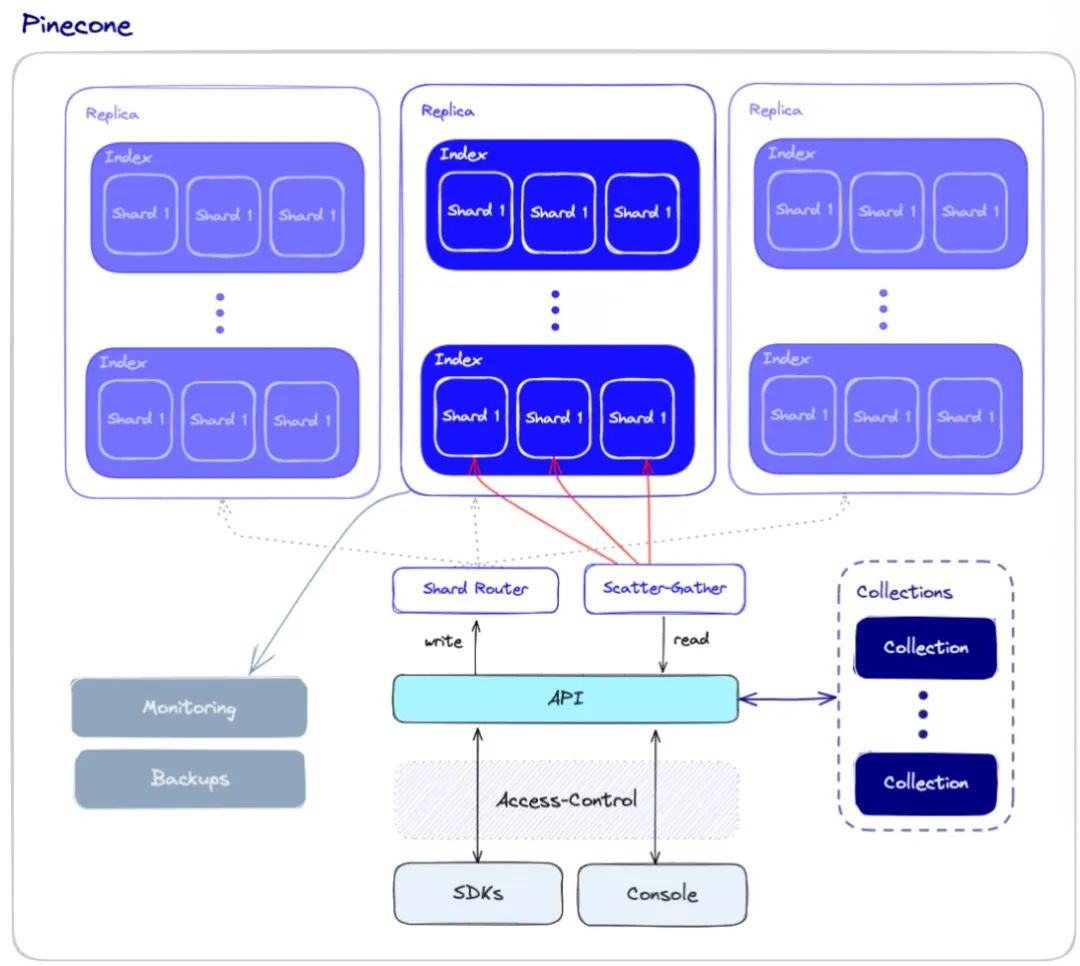 Pinecone 的主要功能包括自动索引、实时更新、查询自动调整和用于与当前流程进行简单交互的 REST API。其架构专为可扩展性和稳健性而构建,可以轻松管理海量数据,同时保持高可用性。