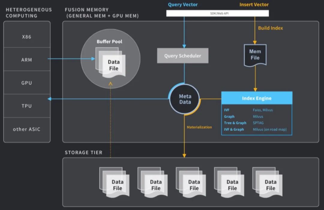 Milvus 基于 Faiss、Annoy、HNSW 等向量搜索库构建,可以轻松管理数百万个实体,可以根据不同的数据特点选择最合适的索引算法,核心是解决稠密向量相似度检索的问题。在向量检索的基础上,Milvus 支持数据分区分片、数据持久化、增量数据摄取、标量向量混合查询、time travel 等功能,同时大幅优化了向量检索的性能,可满足任何向量检索场景的应用需求。