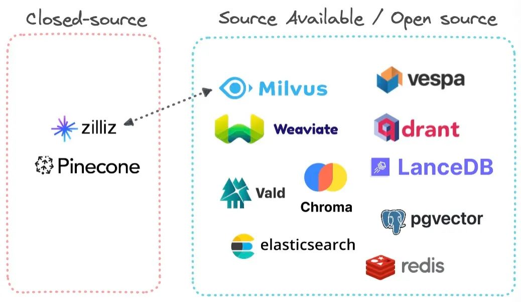 Pinecone是完全闭源的,Zilliz也是一个闭源的完全托管的商业解决方案,但它完全建立在Milvus之上,其他向量数据库至少在代码库方面是源代码可用的,具体的许可证决定了代码的可许可性以及如何部署。