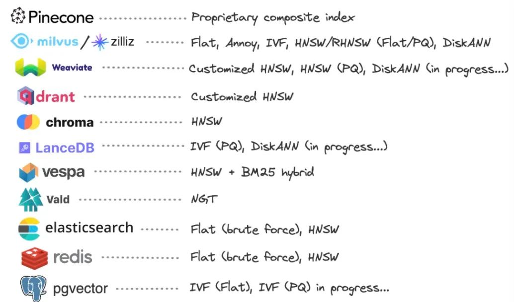 众多向量数据库的检索算法都采用了HNSW,其中,Milvus 的检索算法支持最为丰富。