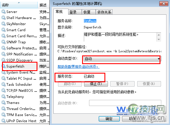 2、插入在打开的WordPress模板闪存时无服务界面中,在窗口右侧找到并双击Superfetch服务,并将其启动类型改为“自动”,服务状态改为“启动”即可;