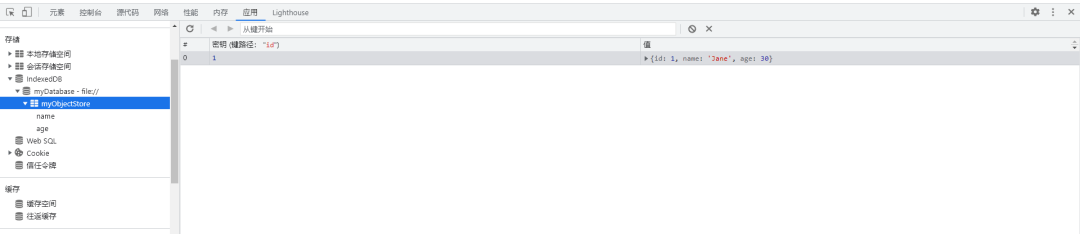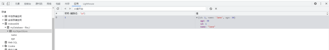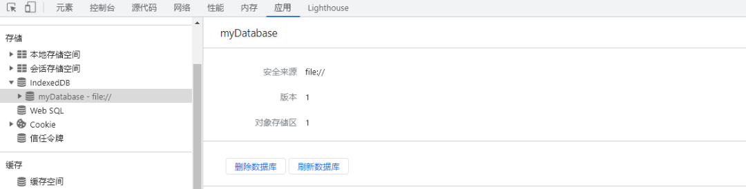 四、在谷歌开发者工具中使用IndexedDB这里使用谷歌浏览器开发者工具切换为中文界面来演示