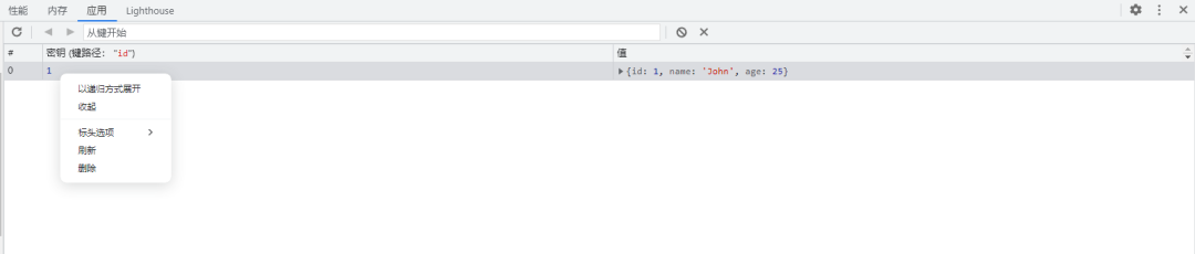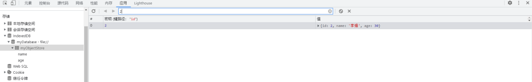 在右侧数据列表里,可以直接看到存储的 JavaScript 对象。