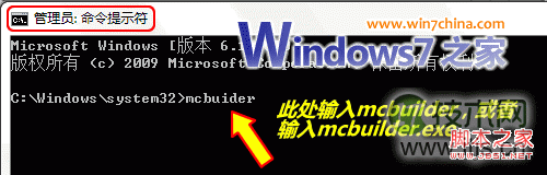 5、依次单击“开始”/“程序”/“附件”选项,从对应的服务器租用选项菜单中用鼠标右键单击“命令提示符”命令,执行右键菜单中的“以管理员帐户运行”命令,再在其后的命令行状态下执行字符串命令“mcbuilder.exe”,重启计算机,搞定!