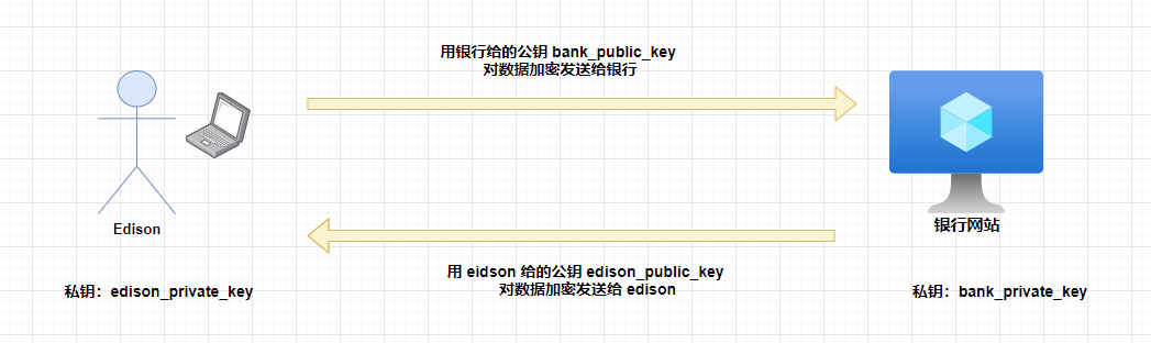 同理,银行用咸鱼提供的公钥进行数据加密,然后咸鱼拿到加密数据之后用自己的私钥进行解密