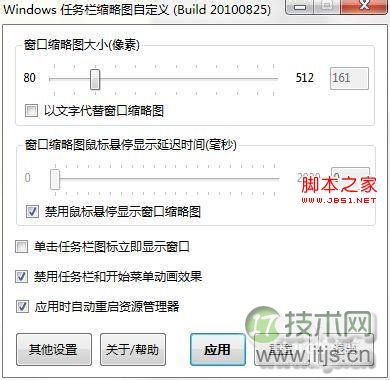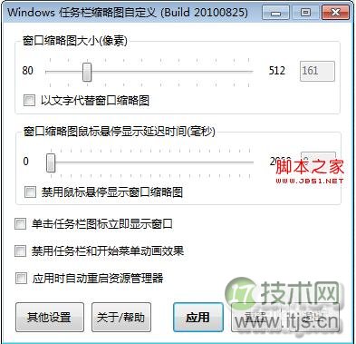 软件名是TaskBandCustomize,中文版的叫Windows 7任务栏实时预览缩略图调整工具