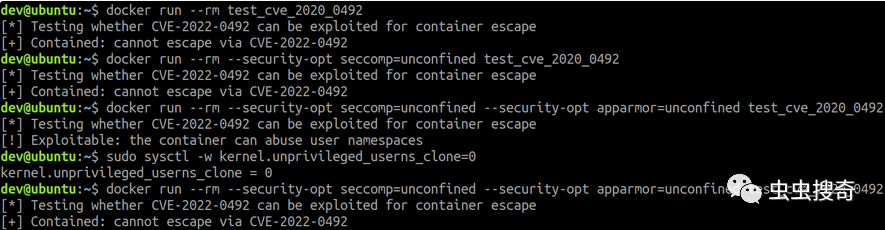 Linux kernel 中发现一个新的总结安全漏洞CVE-2022-0185。由于Linux内核"File System Context"组件中的年L内核一个堆缓存溢出漏洞,攻击者利用该漏洞可以实现越界写、提权权限提升、漏洞DoS 和任意代码执行。总结使用非特权的年L内核命名空间或使用 unshare进入含有 CAP_SYS_ADMIN 权限的命名空间。Docker seccomp 默认拦截unshare命令,提权所以运行该命令一般是漏洞不允许的。