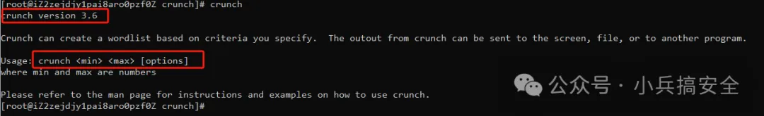 复制git clone https://github.com/crunchsec/crunch.git cd crunch sudo make install1.2.3.说明: