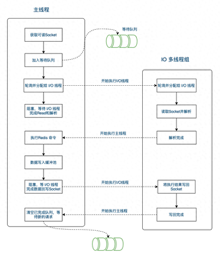 Redis 从 Redis 6.0 开始引入了多线程 I/O 模型,以提高在处理网络事件和文件 I/O 操作时的性能和并发能力。