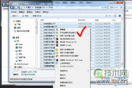 选择要安装的字体(可按Ctrl+A全选),企商汇点击右键,在右键菜单中选择【作为快捷方式安装】(因为本步骤将修改系统文件夹,因此需要管理员权限)