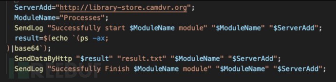 这些模块都是 base 脚本,旨在收集信息后回传至 C&C 服务器。processes 模块会使用 ps -aux 命令获取当前正在运行的进程列表: