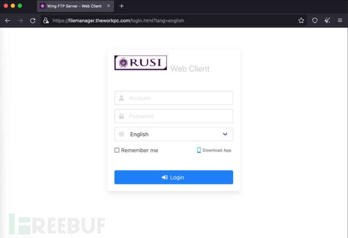 虚假文件共享网站电子邮件中的恶意附件介绍了虚假文件共享服务的链接与凭据,该服务伪装成 RUSI Wing FTP 服务器。