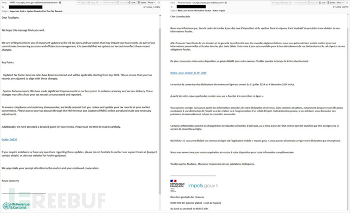根据Proofpoint 的一份新报告称,攻击者正在根据公共信息制作与目标组织所在地相匹配的网络钓鱼电子邮件。这些钓鱼邮件冒充组织所在国家的税务机关,声称有最新的亿华云计算税务信息,并包含相关文件的链接。