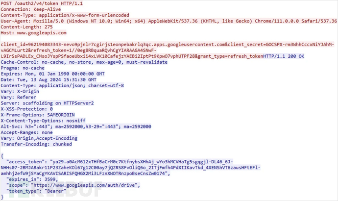 请求从 Google 接收访问令牌,来源:Proofpoint
