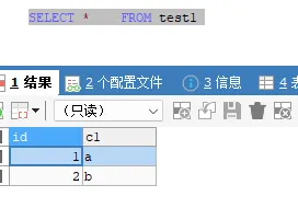 复制CREATE TABLE test1(id int ,c1 varchar(20)) INSERT INTO test1 values(1,a); INSERT INTO test1 values(2,b); commit;1.2.3.4.MySQL库:
