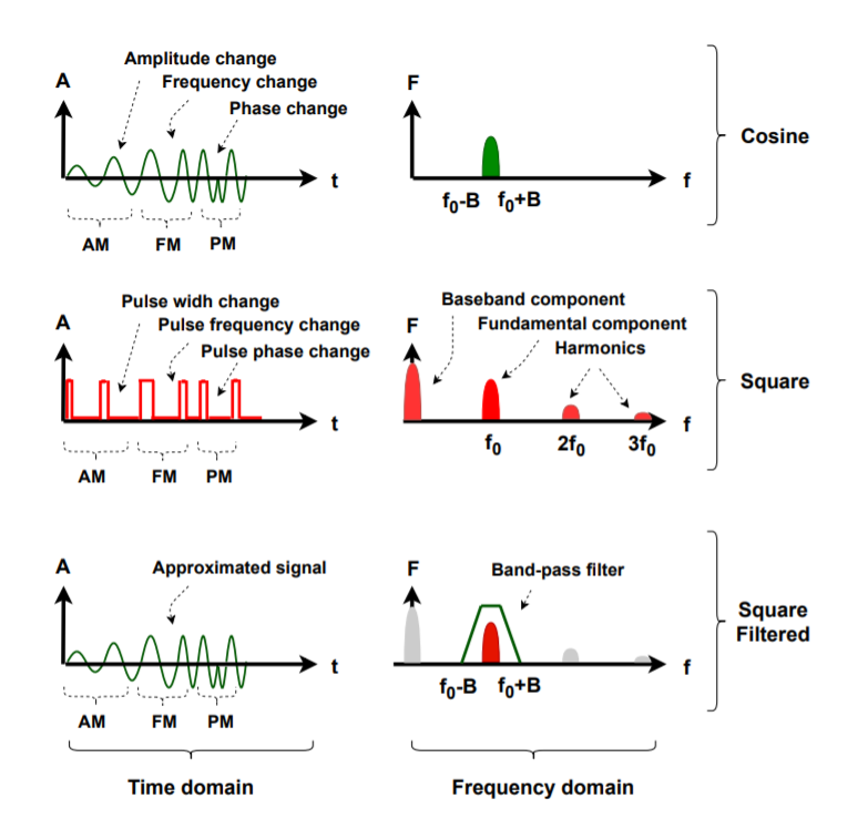 RF-PWM:一种带通一位编码技术,将通用带通信号表示为方波的基波分量,忽略作为带外噪声的其他分量。
