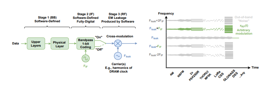 3.电磁RF泄露:使用一种特殊的软件模式在电磁泄露上调制RF-PWM方波。
