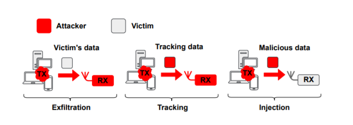 二、追踪类似与渗透设置,攻击者运行Noise-SDR的代码来传输固定的信标信号,该信号可用于识别和跟踪受害者。同样在这种情况下,攻击者控制接收器。这种情况尤其适用于移动和物联网设备。