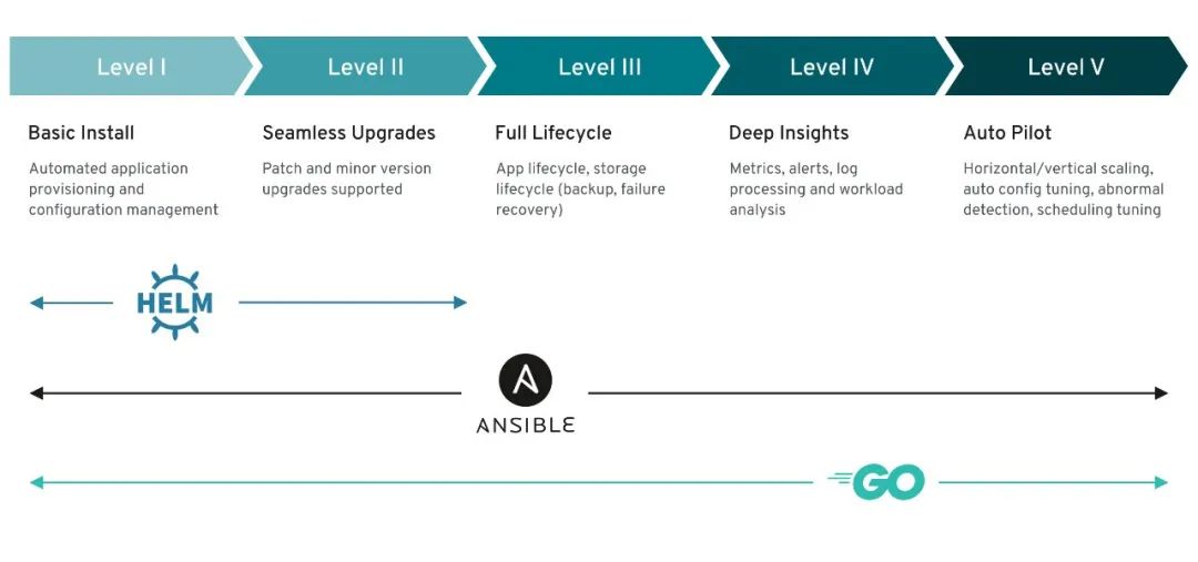 如上图所示,operator sdk可以基于helm、ansilbe和go构建operator,我们需根据当前的情况选择我们合适的operator框架。