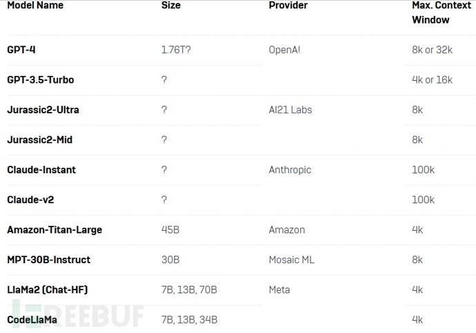 通过将有关遥测的自然语言问题转换为SQL语句,充当事件调查助手;从安全运营中心(SOC)数据生成事件摘要;评定事件严重程度。这些基准测试有两个目的:确定具有微调潜力的基础模型,然后评估这些模型的开箱即用(未调优)性能。研究人员根据模型大小、流行程度、上下文大小等标准选择了以下模型进行分析: