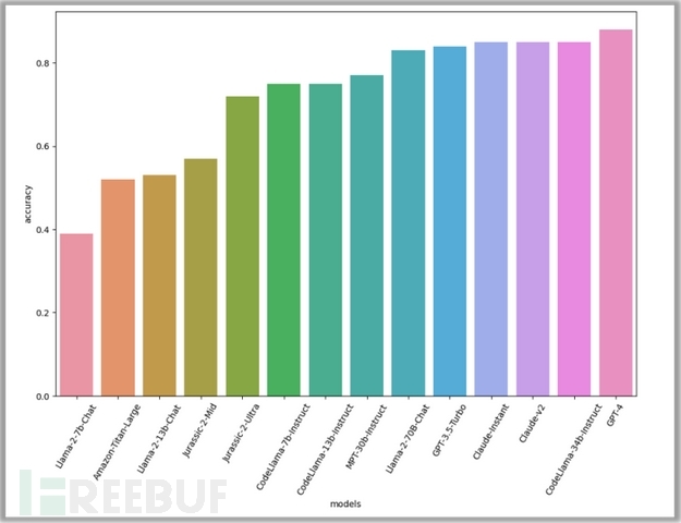 根据评估,GPT-4表现最好,准确率达到88%。紧随其后的是另外三个模型:CodeLlama-34B-Instruct和两个Claude模型,准确率均为85%。CodeLlama在这项任务中的出色表现是意料之中的,因为它专注于生成代码。