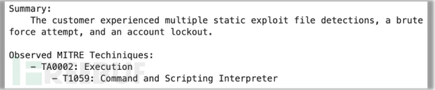 另一方面,J2-Ultra表现不佳。它重复了三次MITRE技术,完全遗漏了战术。不过,好在摘要似乎非常简明扼要。