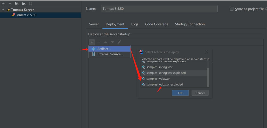 最后配置好tomcat,然后选择对应项目就可以跑起来了。