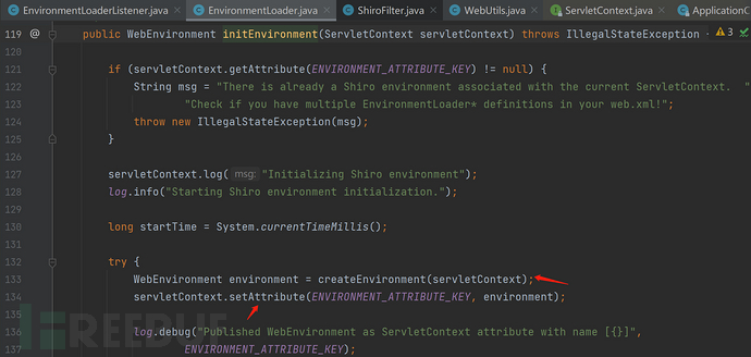 在前面的web.xml配置文件中可以看到除了filter之外还配置了一个EnvironmentLoaderListener,在初始化时就会调用其父类的EnvironmentLoader#initEnvironment方法。