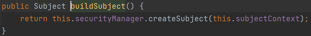 在创建过程中先初始化了WebSubject.Builder类,然后调用Builder.buildSubject,最后调用了SecurityManager#createSubject,其中 的subjectContext是在Builder初始化时创建的DefaultSubjectContext类,这个类负责处理本次会话的上下文对象,它的本质是一个Hashmap。