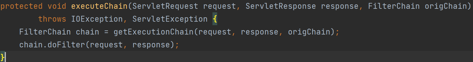updateSessionLastAccessTime方法没什么用就不说了,下面跟进executeChain说一下shiro中的路径匹配。