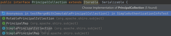复制protected SubjectContext resolvePrincipals(SubjectContext context) { PrincipalCollection principals = context.resolvePrincipals(); if (CollectionUtils.isEmpty(principals)) { principals = getRememberedIdentity(context); if (!CollectionUtils.isEmpty(principals)) { context.setPrincipals(principals); } else { } } return context; }1.2.3.4.5.6.7.8.9.10.11.12.13.14.前面代码逻辑还是差不多的,先从context中获取principal对象,然后检查是是否为空,如果为空则调用getRememberedIdentity创建然后设置到context中,否则直接返回,所以如果要触发反序列化这里必须要为空。我们跟进resolvePrincipals方法中看一下。