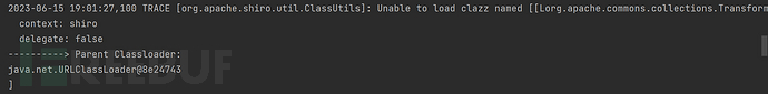 复制public static Class forName(String fqcn) throws UnknownClassException { Class clazz = THREAD_CL_ACCESSOR.loadClass(fqcn); if (clazz == null) { clazz = CLASS_CL_ACCESSOR.loadClass(fqcn); } if (clazz == null) { clazz = SYSTEM_CL_ACCESSOR.loadClass(fqcn); } if (clazz == null) { String msg = "Unable to load class named [" + fqcn + "] from the thread context, current, or " + "system/application ClassLoaders. All heuristics have been exhausted. Class could not be found."; throw new UnknownClassException(msg); } return clazz; }1.2.3.4.5.6.7.8.9.10.11.12.13.14.15.正是由于这里自定义了类加载器,主要都是通过类名然后去找对应的class文件,然后通过defineclass进行类加载。但是由于java中数组的类对象是由jvm创建的,没有对应的class文件,导致在利用时反序列化数组对象时回抛出如下异常。这也是在shiro中利用cc链的一大限制,但并不是主要原因,其他原因在后面分析利用链时再说。