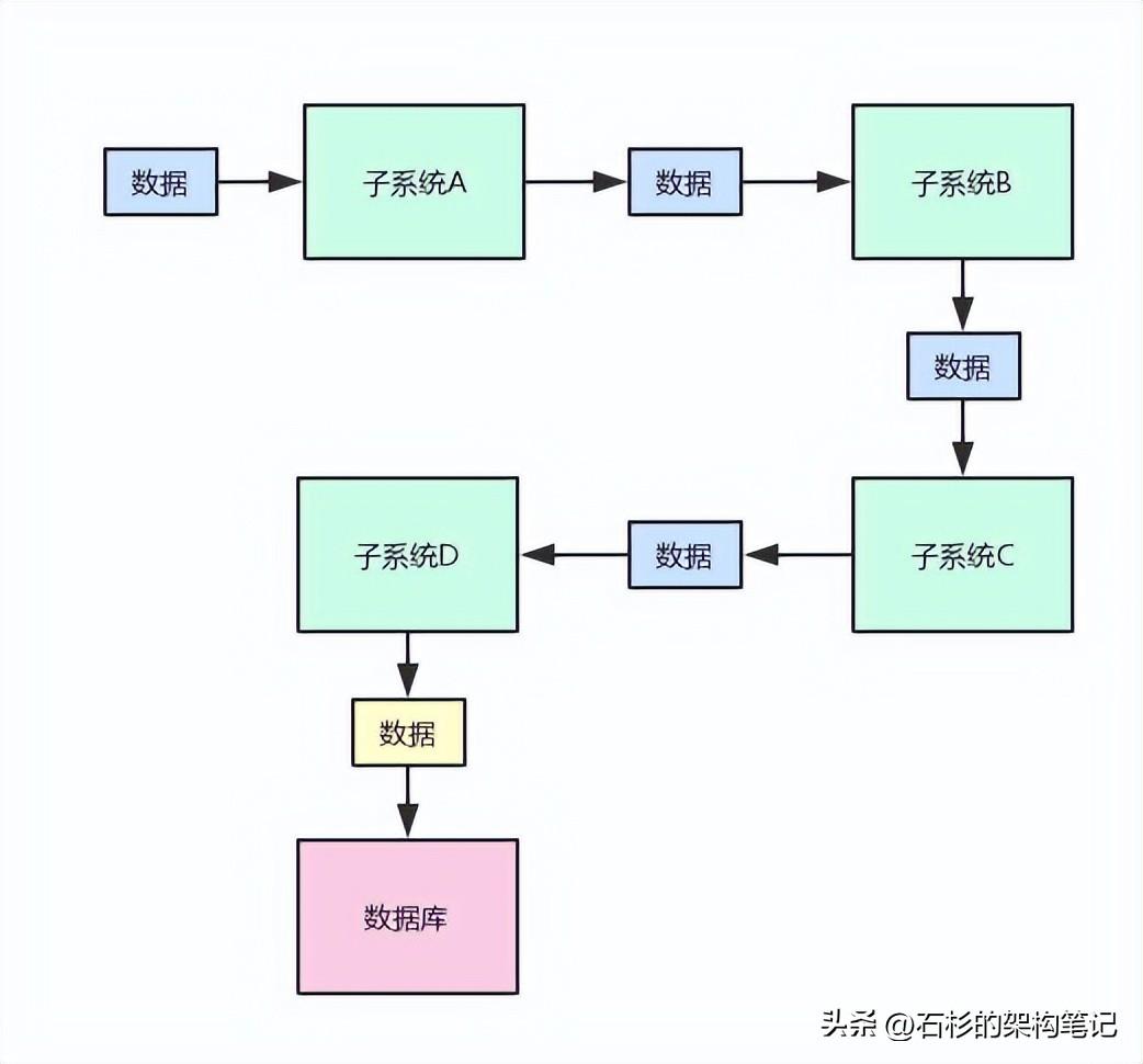 从上图中我们就可以看到,多个系统如何对一个数据依次进行处理,最终拿到一份核心数据,并落地到存储里去。