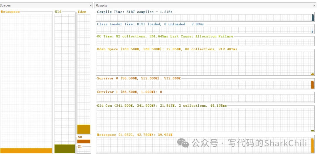 复制save count:1000000 cost:20382ms1.我们通过jstat指令查看堆内存使用情况,触发了6次full gc,整体回收花费了6s,性能表现非常差劲: