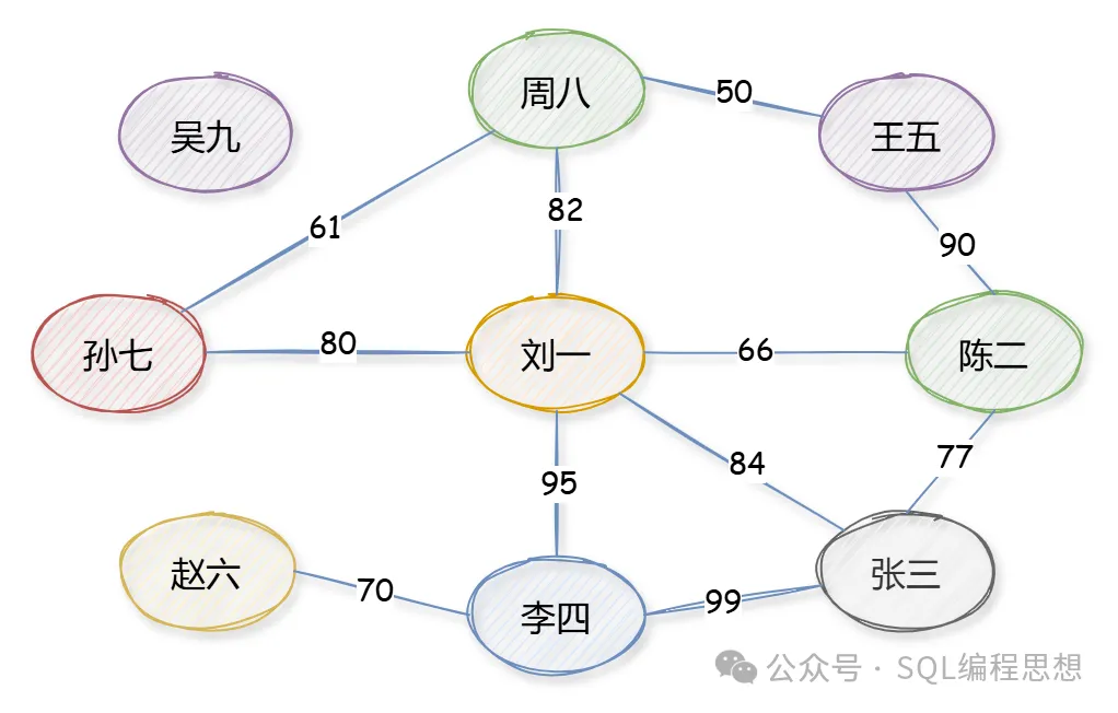 其中,“张三”和“李四”的关系最亲密,权重是 99。