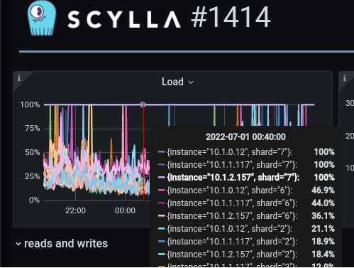 由上图可知,大量的读写传播,给碎片 7 带来了更高的负载。