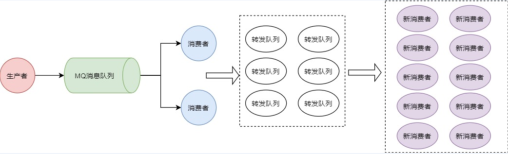 如果消息可以被丢弃,那么直接丢弃就好了一般情况下,消息是不可以被丢弃的,这样就需要考虑策略了,可以将原本的消费端重新部署为一个新的消息队列(MQ)实例,并在后续增加消费端,以形成另一条生产-消息-消费的线路。