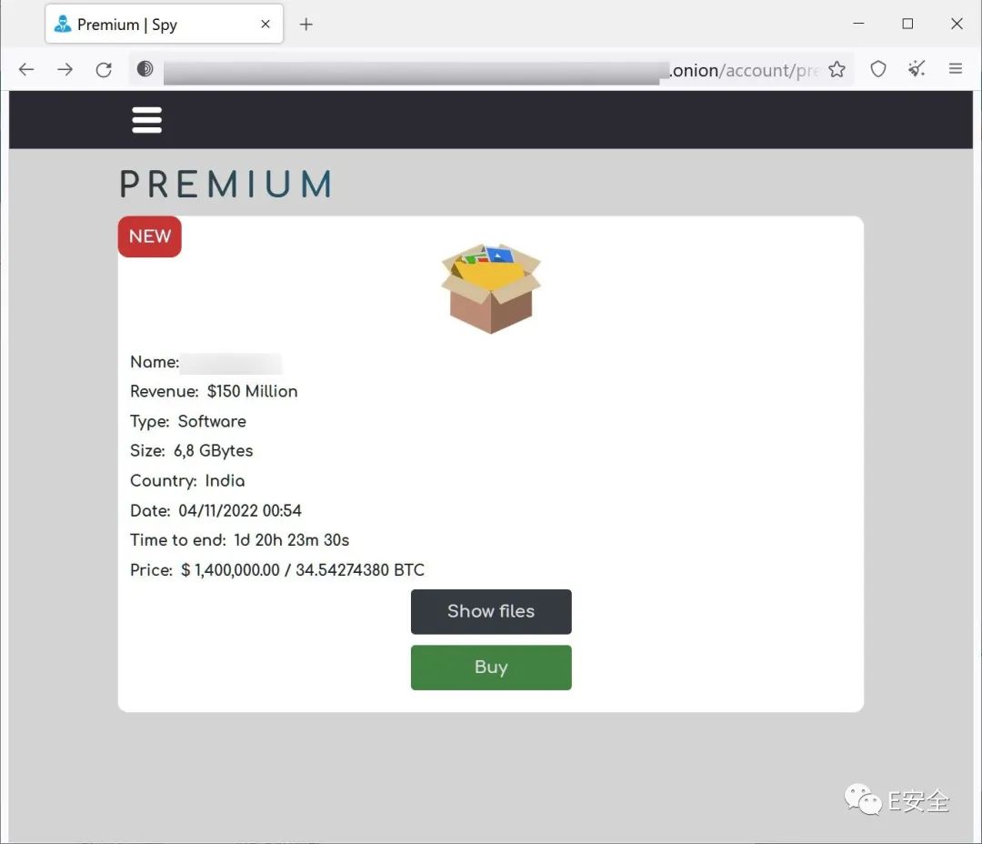 Industrial Spy市场提供不同级别的市场数据数据产品,其中“高级”被盗数据包价值数百万美元,出售而较低级别的各大公司数据可以作为单个文件以低至2美元的价格出售。例如,Industrial Spy目前正在以140万美元的价格出售一家印度公司的高级别数据,以比特币支付。