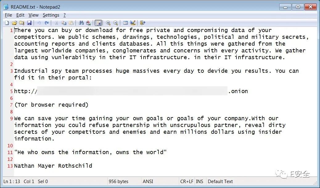 README.txt文本文件中写道:“在那里,你可以购买或下载竞争对手的数据。我们利用IT基础设施中的漏洞,从全球最大的公司和活动中收集数据,并公开了相关的源码下载计划、图纸、技术、政治和军事机密、会计报告和客户数据库。”